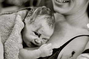 Late January, on my grandfather's birthday, I noticed that I was a little quieter, that I didn't have much of an appetite, and I had a little cramping. I went out to lunch with a good friend and quickly started to tie up homebirth loose ends (like filling out a transfer sheet -- I refused to do so, after all of this, we were having our daughter at home!) I got home with the last of our supplies and started to make "Taco Tuesday" dinner and that's when I had a small trickle. I called our midwives and let them know I would let them know in the evening how I felt, nothing terrible happening. Just camps. A half hour later I had another release of meconium stained fluid and called our midwives, and doula, worried that this would now mean we would have to transfer. My husband had just gotten back from his run and showered so I told him to go get Stanley just incase. Good thing he did. He left and I put on my fear release tracks and our labor was off to the races. I remember playing hide and seek with dinosaur bones with Oliver and pausing between contractions to manage them. One by one our birth team arrived. I remember telling Oliver that his sister was going to be here soon and "Remember those nice ladies and midwives who you met? When they get here it is OK to let them in and you can show them to the bedroom where I will be. My doula arrived first, and then the midwife apprentice, both of which I greeted between contractions so happy to see them. I felt a need to bear down and just felt our daughter getting lower and lower and felt like I couldn't control the urge to push.I wasn't pushing,she was guiding her self out. My midwife came, then my husband and Stanley, and both boys were in the bedroom with us for a short moment. The nurturing that I was receiving from these amazing women still marvels me. They respected my space, didn't tell me what to do, supported me (literally, thank you Kristy for supporting my body weight). The last person to arrive was my soul sister Kim, I looked at her and said, "Oh good,I can have my baby now." and when Ophelia was ready to be born she emerged. She was guided out by our midwife because her shoulder was stuck, but other than that,I reached down and received our daughter.